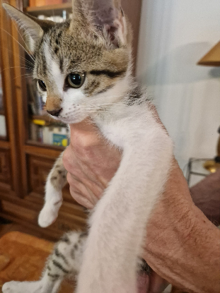 Upsilove est un chaton fille de 2 mois et demi, très sociable, très proche de l'humain. Elle est en famille d'accueil avec son frère Upsilone.