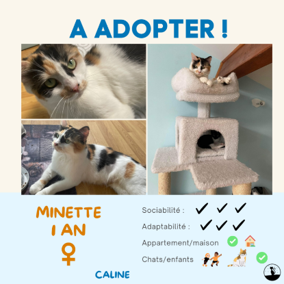 Vous ne trouverez pas plus gentille et douce que Minette Elle est une chatte très affectueuse, en demande d’amour