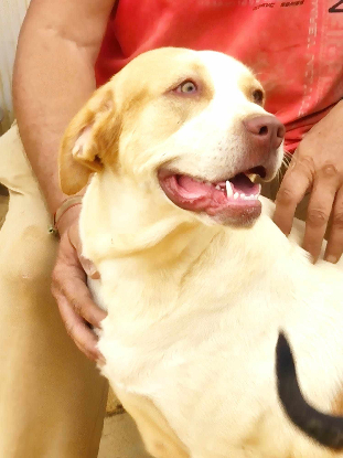 Elle a été trouvée abandonnée et vit actuellement avec d’autres chiens.