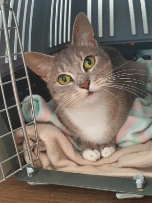 Je suis Topaze, une superbe chatte de 1 an et demi au pelage gris et blanc, et j'ai de grands yeux verts qui captiveront sûrement votre attention. J'ai entendu dire que vous cherchiez une compagne féline, et je suis ici pour vous montrer pourquoi je suis la meilleure candidate pour rejoindre votre famille aimante.