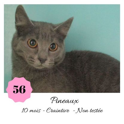 URGENCE EUTHANASIE ! Pineaux est une minette de 10 mois craintive (en situation de fourrière) qui vous attend dans une fourrière du 56. ATTENTION SORTIE AU PLUS TARD LE 28/11/2019 (avant euthanasie) ! Pour adopter, c'est facile : ➡️ On se rend sur la page facebook d'Urgence Fourrière de Bretagne (UFB) -> https://www.facebook.com/sosfourrieresbreizh/ ➡️ On vient en message privé sur la page UFB ➡️ On remplit le questionnaire ➡️ Si le questionnaire est validé, on se rend disponible pour la pré-visite ➡️ On se rend aussi disponible pour venir chercher le loulou en fourrière Les chats sortent de fourrière primo-vaccinés et identifiés. Restera à charge de l’adoptant le rappel de vaccin et la stérilisation qui est OBLIGATOIRE. Les femelles en fourrière ayant été trouvées dans la rue, il y a fort à parier que nombre d'entre elles en âge de l'être soient gestantes ... ---- A PROPOS D'URGENCE FOURRIERE DE BRETAGNE (UFB) Nous sommes un COLLECTIF d'ASSOCIATIONS DE PROTECTION ANIMALE (qui rassemble notamment Moustaches et Compagnie, Bêtes de Scène, les Pachas, Chats Libres de Berné, etc, etc....) Le BUT de ce collectif d'associations est donc de SORTIR ces animaux des fourrières surchargées en les faisant ADOPTER de manière LEGALE par des familles ou en leur trouvant des FAMILLES D'ACCUEIL lorsque des places en association se libèrent.