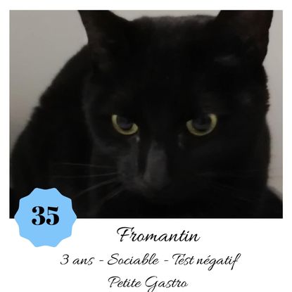 URGENCE EUTHANASIE ! Fromantin est un matou de 3 ans sociable qui vous attend dans une fourrière du 35. ATTENTION SORTIE AU PLUS TARD LE 28/11/2019 (avant euthanasie) ! Pour adopter, c'est facile : ➡️ On se rend sur la page facebook d'Urgence Fourrière de Bretagne (UFB) -> https://www.facebook.com/sosfourrieresbreizh/ ➡️ On vient en message privé sur la page UFB ➡️ On remplit le questionnaire ➡️ Si le questionnaire est validé, on se rend disponible pour la pré-visite ➡️ On se rend aussi disponible pour venir chercher le loulou en fourrière Les chats sortent de fourrière primo-vaccinés et identifiés. Restera à charge de l’adoptant le rappel de vaccin et la stérilisation qui est OBLIGATOIRE. Les femelles en fourrière ayant été trouvées dans la rue, il y a fort à parier que nombre d'entre elles en âge de l'être soient gestantes ... ---- A PROPOS D'URGENCE FOURRIERE DE BRETAGNE (UFB) Nous sommes un COLLECTIF d'ASSOCIATIONS DE PROTECTION ANIMALE (qui rassemble notamment Moustaches et Compagnie, Bêtes de Scène, les Pachas, Chats Libres de Berné, etc, etc....) Le BUT de ce collectif d'associations est donc de SORTIR ces animaux des fourrières surchargées en les faisant ADOPTER de manière LEGALE par des familles ou en leur trouvant des FAMILLES D'ACCUEIL lorsque des places en association se libèrent.