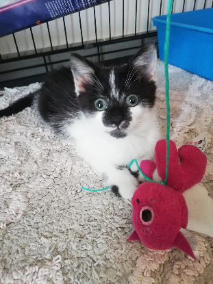 Urion (noir et blanc) 3 mois, a un petit air coquin.