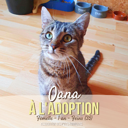 Oana est une chatte adorable, patiente, câlineuse, joueuse, adaptable... Une maman chat qui a protégé sa progéniture dehors, mais qui a tout de suite fait confiance aux humains pour l'aider et la soigner une fois mise à l'abri.