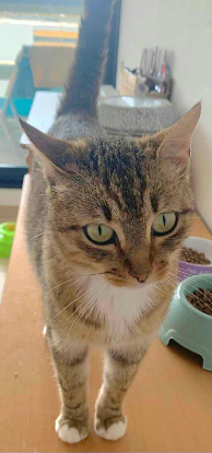 Elle s'entend avec les autres chats, on ne connaît pas sa réaction face aux chiens.