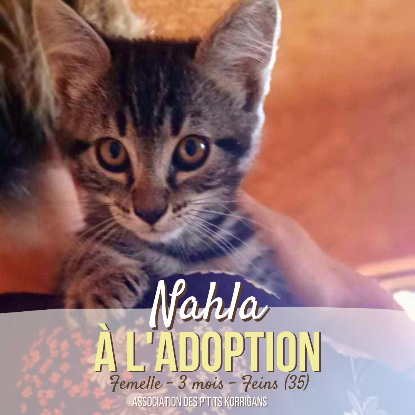 Nahla est une chatonne plutôt discrète, et moins montée sur ressort que ses 2 frères très dynamiques. Pour autant, elle n'est pas la dernière à apprécier une bonne partie de jeu : elle aime beaucoup jouer et se dépenser au détour d'une partie de canne à pêche. Nahla est une chatonne avec sevrage complet, car elle a la chance d'avoir été recueillie avec sa maman. C'est donc un félin bien dans ses pattounes qui pourra s'épanouir en chat unique, ou intégrer une troupe de félins sans aucun problème. Elle ne connaît pas encore les chiens mais pourra sans s'entendre avec eux si les présentations sont faîtes à son rythme, sans brusquer (comme pour la plupart des chats :)). Elle a l'habitude des enfants et pourra vivre dans un foyer avec enfants sans difficultés.