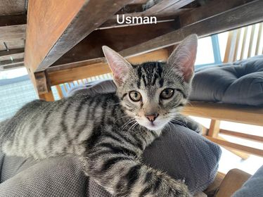 A adopter Usman, chaton mâle tigré de 4 mois (né vers le 01 Avril 2023) très gentil et joueur. Il est visible à Saint germain sur Morin (77860) dans sa famille d'accueil. Il est pucé, vacciné, testé leucose et sida et stérilisé. Il s'entend très bien avec les autres chats et est ok appartement ou maison. Lisez bien les conditions d'adoption avant de nous contacter: https://acca94.fr/conditions-de-ladoption/
