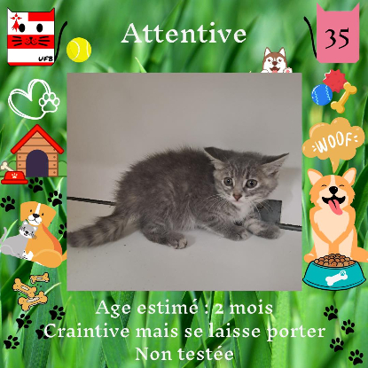 Attentive, femelle de 2 mois craintive (un comportement normal en fourrière) qui vous attend dans une fourrière du 35. ATTENTION SORTIE AU PLUS TARD LE 01/09/2023 (avant euthanasie) !