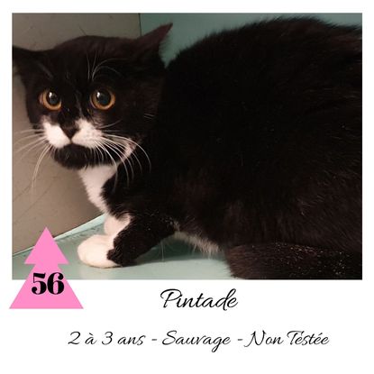 URGENCE EUTHANASIE ! Pintade est une minette de 2-3 ans sauvageonne (en situation de fourrière) qui vous attend dans une fourrière du 56. ATTENTION SORTIE AU PLUS TARD LE 5/12/2019 (avant euthanasie) ! Pour adopter, c'est facile : ➡️ On se rend sur la page facebook d'Urgence Fourrière de Bretagne (UFB) -> https://www.facebook.com/sosfourrieresbreizh/ ➡️ On vient en message privé sur la page UFB ➡️ On remplit le questionnaire ➡️ Si le questionnaire est validé, on se rend disponible pour la pré-visite ➡️ On se rend aussi disponible pour venir chercher le loulou en fourrière Les chats sortent de fourrière primo-vaccinés et identifiés. Restera à charge de l’adoptant le rappel de vaccin et la stérilisation qui est OBLIGATOIRE. Les femelles en fourrière ayant été trouvées dans la rue, il y a fort à parier que nombre d'entre elles en âge de l'être soient gestantes ... ---- A PROPOS D'URGENCE FOURRIERE DE BRETAGNE (UFB) Nous sommes un COLLECTIF d'ASSOCIATIONS DE PROTECTION ANIMALE (qui rassemble notamment Moustaches et Compagnie, Bêtes de Scène, les Pachas, Chats Libres de Berné, etc, etc....) Le BUT de ce collectif d'associations est donc de SORTIR ces animaux des fourrières surchargées en les faisant ADOPTER de manière LEGALE par des familles ou en leur trouvant des FAMILLES D'ACCUEIL lorsque des places en association se libèrent.