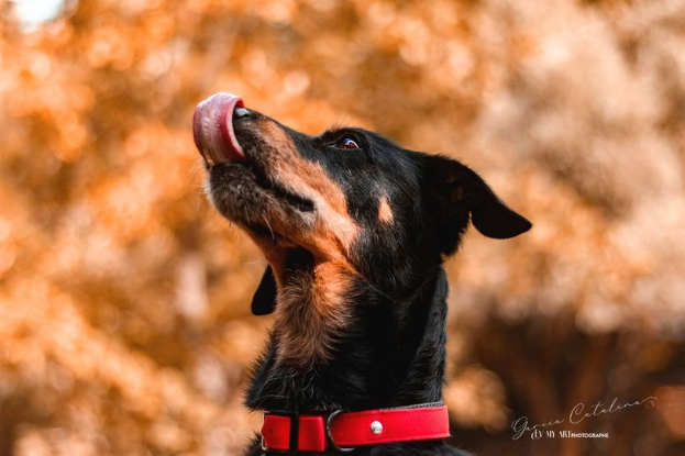Oréo est déjà sorti plusieurs fois en forêt, en laisse. Le rappel n’est pas acquis : il a été lâché une fois et s’est éloigné, donc ses humains l'ont sorti attaché par la suite.