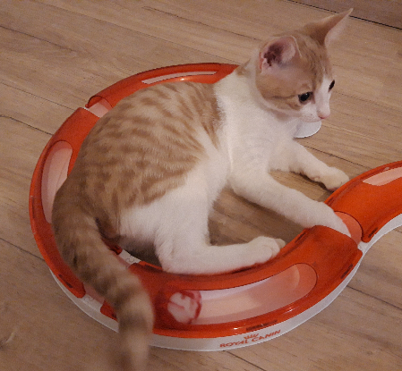Ursule est un châton câlin et une vraie machine à ronrons à chaque contact avec sa famille d'accueil. Il aime se coller et venir sur les genoux pour de belles séances de caresses. Ce n'est pas un loulou timide. Il est très complice avec ses frères et très joueur. Il est plein d'énergie quand il est l'heure de s'amuser : il court, il saute, il se cache. Un vrai bonheur. C'est un gourmand qui ne résiste pas à l'appel de la gamelle.