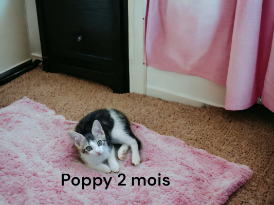 Poppy est un adorable minette de 2 mois. Elle est propre.