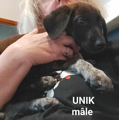 UNIK est un mâle noir aux reflets roux (collier noir) de taille moyenne.