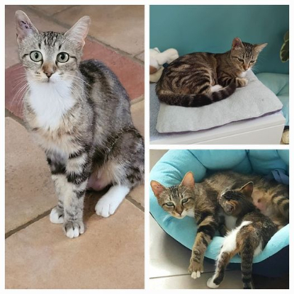 Isis : Jolie minette tigrée d' environ 1 an. Trouvée qui miaulait au désespoir en pleine rue… On remercie les personnes qui se sont souciées d' elle et nous ont appelé pour qu' on la prenne en charge rapidement. A son arrivée, après un contrôle vétérinaire et les soins nécessaires, elle était très maigre et allaitante ( aucune trace des chatons). Elle a été très fatiguée de la stérilisation mais aujourd'hui elle reprend des forces. C'est une minette très pot de colle, avenante, sympathique, douce et bavarde. Une chatte parfaite qui a connu un foyer, nous en sommes persuadées, mais qui n'a pas été réclamée ? Elle saura vous faire craquer part sa gentillesse. Visible à Saint André chez Sophie. Adoptable sous contrat associatif contre remboursement des frais vétérinaires. FRAIS D'ADOPTION : • 215€ identification, primo vaccination et son rappel, anti parasite interne et externe, testée Fiv/Felv négative et stérilisée.