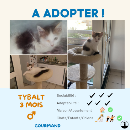 Tybalt est un chaton exceptionnel Après la perte de son œil gauche, des suites d’un abcès, Tybalt a toujours gardé le moral. Il est un chaton plein de vie et d’amour, curieux, joueur, très gourmand et surtout excessivement câlin. Tybalt est donc un chaton craquant, qui vous réclamera énormément d’amour