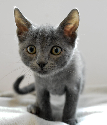 joli petit chaton gris, prêt à partir dans son nouveau foyer