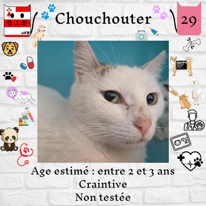 Chouchouter, femelle de 2-3 ans craintive (un comportement normal en fourrière) qui vous attend dans une fourrière du 29. ATTENTION SORTIE AU PLUS TARD LE 15/09/2023 (avant euthanasie) !