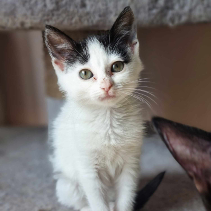 Mal sevrée, Ulwenn a un petit défaut : elle aime beaucoup téter son humain... Un chat adulte déjà présent sera important pour l'éduquer car malgré toute la bonne volonté de sa famille d'accueil, elle ne remplacera jamais une maman chat.