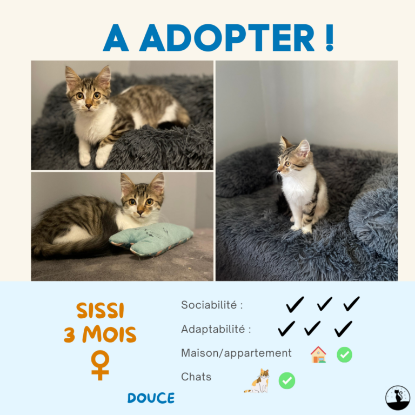 Aussi mignonne que sage, Sissi est une petite chatoune calme et douce Timide au premier abord, elle a besoin de construire une relation unique et de confiance avec ses humains pour se révéler câline et adorable Sissi est donc un petit amour de chaton, proche de ses humains, joueuse et extrêmement attachante.