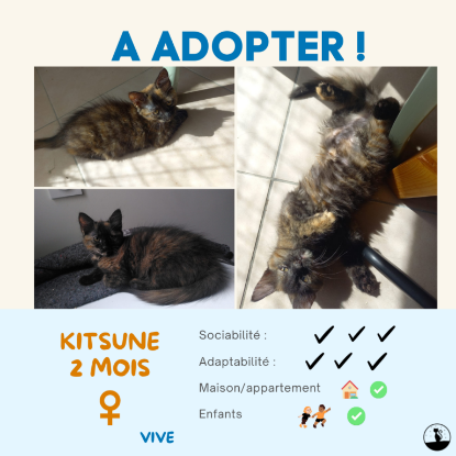 Cette petite beauté s’appelle Kistune Un jolie prénom pour une très jolie demoiselle, débordante de vie et d’énergie. Kistune est une chatoune pot de colle, elle adore observer et suivre de partout ses humains. Elle se blottit volontiers contre eux, dans le canapé ou sur le lit. Kistune est aussi très joueuse, rusée et intelligente
