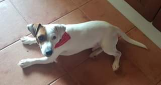 PANCHO, mâle croisement Jack Russell Terrier né le 1er mai 2022, 36 cm et pèse 7,5 kg