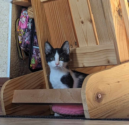 Ulmine 3 mois bientôt, est une petite puce discrète, elle a besoin d'un petit temps d'adaptation pour se transformer en une vraie boite a ronrons. C'est une petite crevette tendre et attachante. Elle côtoie d'autres animaux au quotidien (chats et chiens). Elle est également habituée aux jeunes enfants. La douce pourra quitter l'association à partir du 18 octobre, mais en attendant peu recevoir des visites et être réservée. Elle sera identifiée, vaccinée et stérilisée au moment de son adoption. En accueil avec ses sœurs à Vicq sur Gartempe, dans le 86. Frais d'adoption 170€.