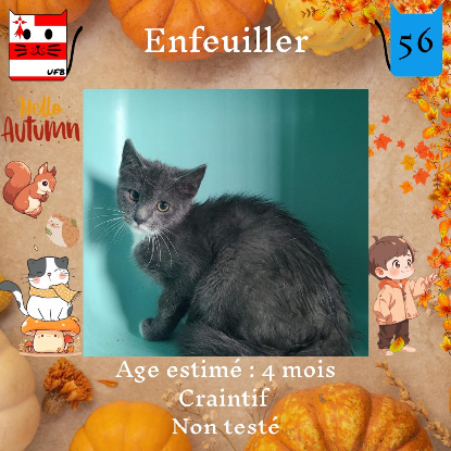 Enfeuiller, mâle de 4 mois craintif (un comportement normal en fourrière) qui vous attend dans une fourrière du 56. ATTENTION SORTIE AU PLUS TARD LE 30/09/2023 (avant euthanasie) !