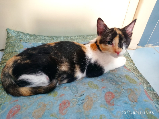 C'est une petite chatte affectueuse. Elle s'entend bien avec les autres chats. Elle aime jouer.