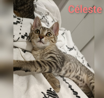 Céleste est ok chats , nous préférons pour elle un grand appartement avec extérieur ou une maison .