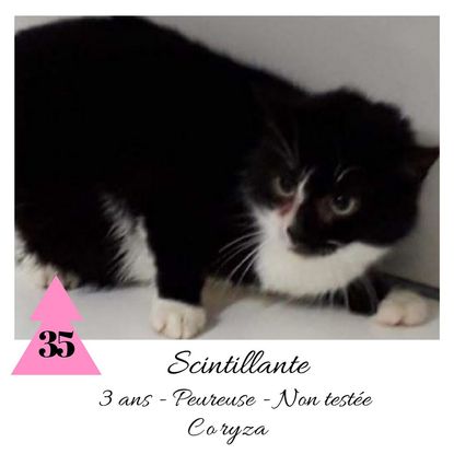 URGENCE EUTHANASIE ! Scintillante est une minette de 3 ans peureuse (en situation de fourrière) qui vous attend dans une fourrière du 35. ATTENTION SORTIE AU PLUS TARD LE 19/12/2019 (avant euthanasie) ! Pour adopter, c'est facile : ➡️ On se rend sur la page facebook d'Urgence Fourrière de Bretagne (UFB) -> https://www.facebook.com/sosfourrieresbreizh/ ➡️ On vient en message privé sur la page UFB ➡️ On remplit le questionnaire ➡️ Si le questionnaire est validé, on se rend disponible pour la pré-visite ➡️ On se rend aussi disponible pour venir chercher le loulou en fourrière Les chats sortent de fourrière primo-vaccinés et identifiés. Restera à charge de l’adoptant le rappel de vaccin et la stérilisation qui est OBLIGATOIRE. Les femelles en fourrière ayant été trouvées dans la rue, il y a fort à parier que nombre d'entre elles en âge de l'être soient gestantes ... ---- A PROPOS D'URGENCE FOURRIERE DE BRETAGNE (UFB) Nous sommes un COLLECTIF d'ASSOCIATIONS DE PROTECTION ANIMALE (qui rassemble notamment Moustaches et Compagnie, Bêtes de Scène, les Pachas, Chats Libres de Berné, etc, etc....) Le BUT de ce collectif d'associations est donc de SORTIR ces animaux des fourrières surchargées en les faisant ADOPTER de manière LEGALE par des familles ou en leur trouvant des FAMILLES D'ACCUEIL lorsque des places en association se libèrent.