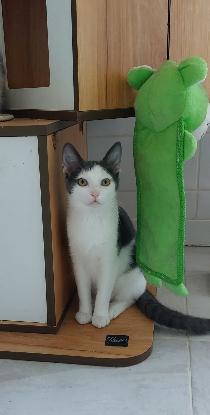 Mushu, joli chaton né le 1er juin 202, gris et blanc trouvé errant avec sa fratrie