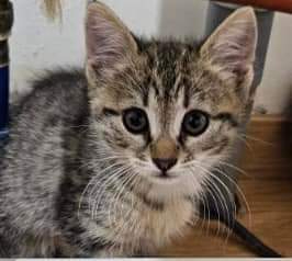 Taïka, femelle d'environ 2 mois, sauvée de l'extérieur il y a peu.