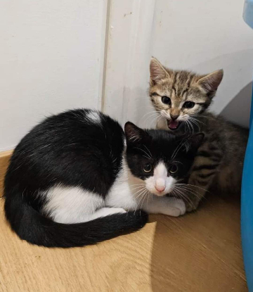 Tiger, chaton d'environ 2 mois, a été sauvé de l'extérieur il y a peu. Le gris sur la photo, frère de Taïka