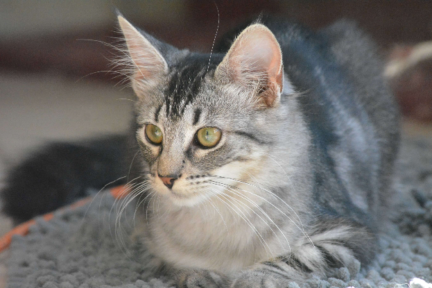 Cette jolie petite chatonne arrivée craintive dans sa famille d'accueil, a fini par faire confiance à sa nounou, et est prête à s'épanouir dans son nouveau foyer