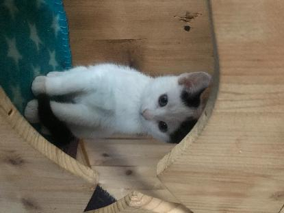 Encore un peu sur la réserve, Neige est pourtant pleine de ronrons lorsqu'on la caresse. Venez la rencontrer !