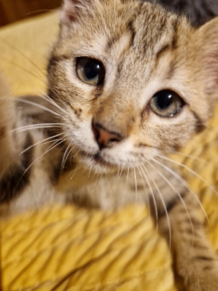 Choupinou est un adorable chaton de 2 mois, très curieux, téméraire, mais aussi très câlin et qui ronronne dès qu'on le caressé.