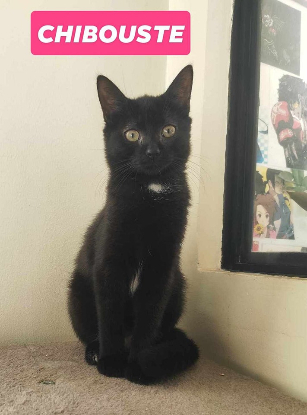 Mignonne petite chatonne, très timide. Elle a été trouvée dans la nature avec ses 2 sœurs (Amandine et Fleurette), Chibou\\ste est la dernière de la fratrie à attendre sa famille de cœur. Elle est très sociable et joueuse avec les autres chats et a besoin de la présence d'un compagnon chat peu importe son âge s'il est câlin et joueur avec elle. Chibouste est un chat à apprivoiser ce n'est pas le chat nounours, une personne patiente est vraiment indispensable.