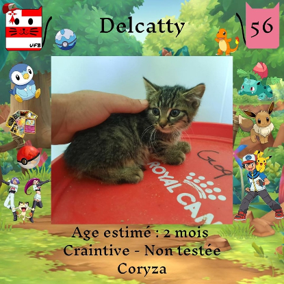 Delcatty, femelle de 2 mois craintive (un comportement normal en fourrière) qui vous attend dans une fourrière du 56. ATTENTION SORTIE AU PLUS TARD LE 13/10/2023 (avant euthanasie) !
