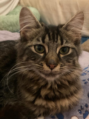 Cheyenne est disponible à l’adoption! Ce magnifique chaton aux poils mi-longs a environ 6 mois. Très doux, câlin et affectueux, il aime être contre vous. Tempérament plutôt calme.