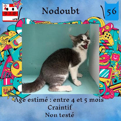 Nodoubt, mâle de 5 mois craintif (un comportement normal en fourrière) qui vous attend dans une fourrière du 56. ATTENTION SORTIE AU PLUS TARD LE 20/10/2023 (avant euthanasie) !