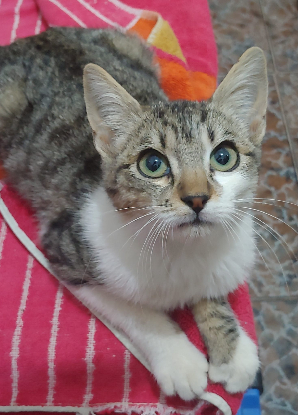 IRIS est une adorable petite chatte qui a été récupéré sur le toit de la maison de l'une de nos bénévoles. Elle a sûrement été abandonnée ici.