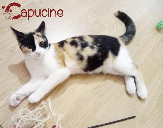 CAPUCINE est une louloute timide à qui il faut laisser du temps pour appréhender son nouvel environnement et ses nouveaux Humains. Très observatrice, curieuse, joueuse et gourmande; des atouts pour réussir à l'amadouer