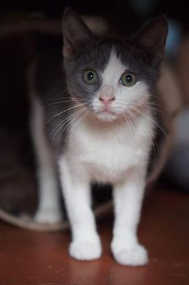 PODCAST a été trouvé il y a deux mois avec sa soeur en piteux état , souffrant d'un gros coryza et de dénutrition . Aujourd'hui c'est un amour de chaton plein de vie et qui adore les genoux