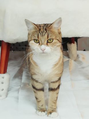 Née le 1er avril 2019. Elle est venue mettre bas sur un balcon ce qui a permis sa prise en charge avec ses bébés. Elle est douce et adore le contact humain. Elle n'aime pas être prise dans les bras mais se fera un plaisir de prendre position sur les genoux ou de vous tenir compagnie.