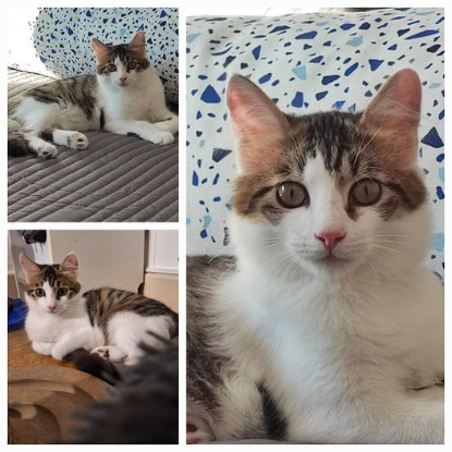 Chaton de 3 mois brown blotched tabby et blanc poils mi longs. Timide et réservé ce petit loulou aura besoin d' un environnement calme sans enfants afin de se sentir en sécurité. Expressif, il aime raconter des choses. Gourmand il ne refusera jamais quelques friandises. Fan de ses congénères, un copain est obligatoire pour son épanouissement. Vous l' aurez compris, douceur patience et amour feront de Shadow un chaton épanoui. Visible sur Auch chez David et Bérénice. Adoptable sous contrat associatif contre remboursement des frais vétérinaires FRAIS D'ADOPTION : • 130€ identification, primo vaccination, anti parasite interne et externe, La stérilisation est obligatoire et incluse dans le tarif d'adoption.
