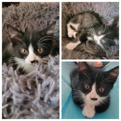 Jeune chaton noir smoke et blanc, son pelage est très original et sa petite moustache est adorable. Il a environ 2 mois et est prêt pour de nouvelles aventures. Sauvé d'un triste sort puisque son frère est décédé sous les roues d'une voiture. Cette fratrie de 4 chatons est issue certainement d'un abandon car arrivés sur un point de nourrissage. Usop est un petit chaton attendrissant, timide mais ronronnant il ne résiste pas longtemps si vous lui caressez le ventre et là, c' est la ronronthérapie assurée. Gai et joueur, Ii cherche un doux foyer pour oublier son début de vie difficile. Visible chez Magali à Pompiac. Adoptable sous contrat associatif contre remboursement des frais vétérinaires. FRAIS D'ADOPTION : • 130€ identification, primo vaccination, anti parasite interne et externe, La stérilisation est obligatoire et incluse dans le tarif d'adoption.