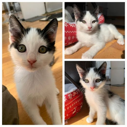 Mâle blanc et noir d' environ 2 mois. Issu du même endroit qu' Ullips, sa maman a pu être stérilisée et relâchée. Uttara est un chaton vif, joueur et pot de colle. Très très câlin, avenant et en demande c'est un vrai tracteur en terme de ronrons. Il adore jouer avec l' homme comme avec des congénères et ses copains lapins. Pas testé chiens. Un compagnon félin serait idéal pour ce petit loulou qui en recherche la présence. Visible chez Lucy et Noé. Adoptable sous contrat associatif contre remboursement des frais vétérinaires. FRAIS D'ADOPTION : • 130€ identification, primo vaccination, anti parasite interne et externe, La stérilisation est obligatoire et incluse dans le tarif d'adoption.