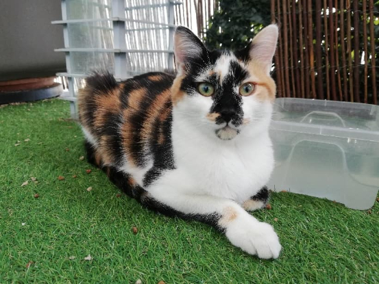 Très joueuse, elle apprécie aussi beaucoup les séances de câlins et aime avoir ses moments d’indépendance.