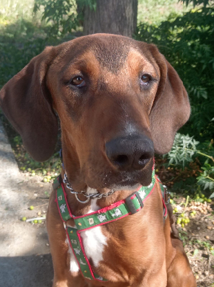 Il serait de race pure chien rouge de Bavière mais de gabarit plus grand. C'est un super loulou, très câlin, qui aime jouer et qui s'entend très bien avec ses congénères. Il est sociable même s'il est un peu timide, au début, avec les inconnus. Il est ok enfants. Un test chat pourra être fait pour toute demande sérieuse. Il apprend à marcher en laisse et la vie de famille.