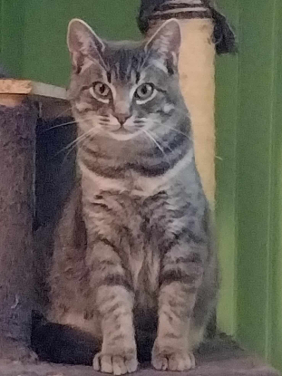 Très beau chaton tigré de 8 mois, timide avec l'humain mais il se laisse caresser.